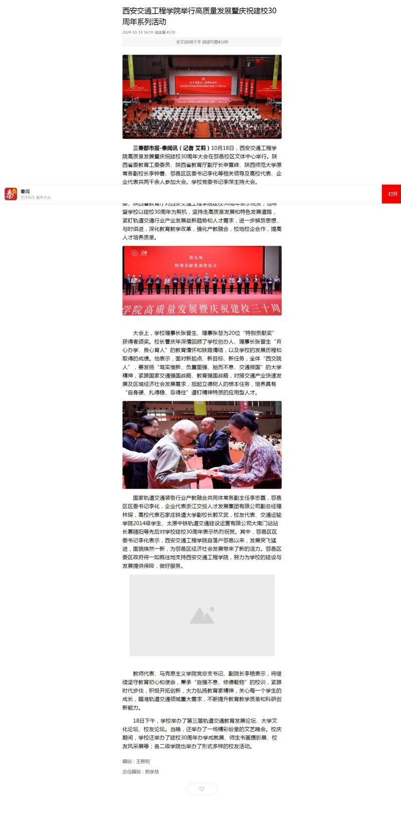 三秦都市报:beat365在线唯一官网举行高质量发展暨庆祝建校30周年系列活动