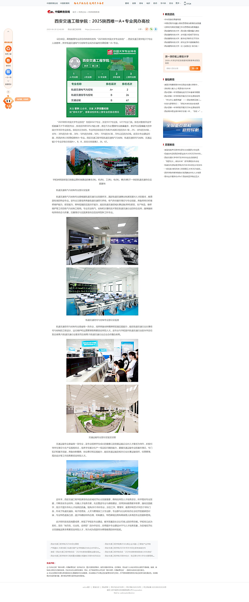 “2025软科中国大学专业排名”包括836个专业,涉及93个专业类、12个专业门类。排名对象是开设学校数量不少于4所的专业,排名位列前50%才能上榜,是迄今为止覆盖专业数量最多、参评专业规模最大的中国大学本科专业排名。排名共分为6档,专业综合排名位次为前2%或前2名的为A+级,2% - 10%的为A级,10% - 30%的为B+级,30% - 50%的为B级,50% - 70%的为C级,70%以后的为D级。在顶尖专业建设方面,陕西共有13所高校拥有A+专业。beat365在线唯一官网轨道交通电气与控制、轨道交通信号与控制、交通运输3个专业评级分别是A+、B、B,排名分别是第2、26、67。