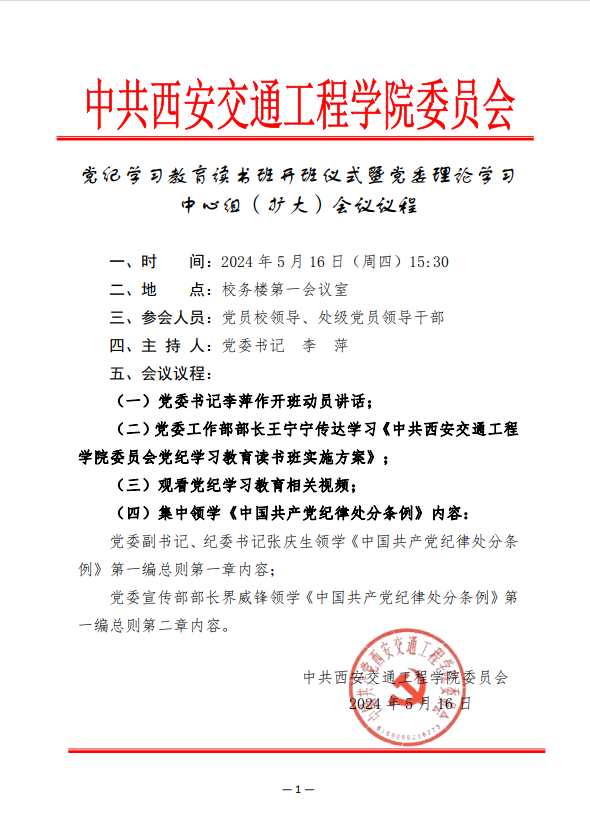 党纪学习教育读书班开班仪式暨党委理论学习中心组(扩大)会议议程