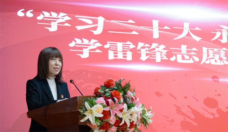 仪式在志愿者们声情并茂的诗朗诵《怀念雷锋》中拉开帷幕。团委书记千红同志就本次“学习二十大 永远跟党走 青春志愿行”学雷锋活动月作了总体安排部署,她表示要以习近平新时代中国特色社会主义思想为指导,紧紧围绕党的二十大关于完善志愿服务制度和工作体系的要求,持续组织交院青年志愿者积极参与助老助残、生态环保等志愿服务八大行动,并就十项子活动作了具体安排及要求。千书记指出,各团总支要积极搭建服务平台,精心设计活动载体,完善志愿服务机制,统筹协调力度,常态化开展各项志愿服务活动,要巩固队伍、建立阵地、推出品牌、选树典型、表彰模范、联络媒体,形成集项目、队伍、机制、阵地、宣传于一体的志愿服务常态化运行模式。各级志愿者服务队要利用宣传矩阵,广泛宣传学雷锋志愿服务活动开展情况,深入挖掘学雷锋志愿服务中的典型事迹,大力宣传特色志愿服务活动,展现西交院青年志愿者风采,形成示范导向,营造良好校园文明风尚。团结带领全校学生进一步传承和弘扬雷锋精神,为学校顺利通过本科教学合格评估工作贡献青春智慧和力量。