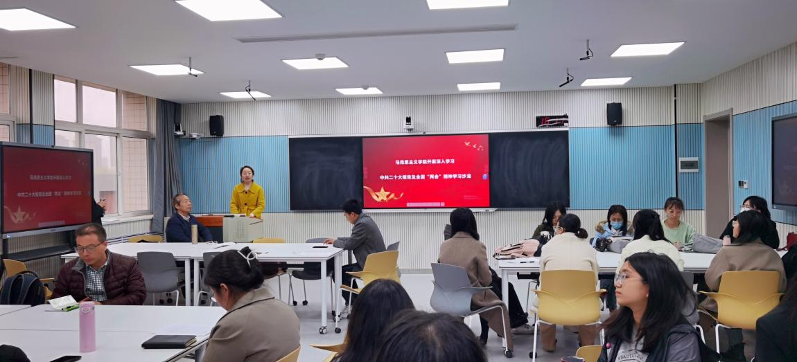 为进一步推动教师全面理解、准确把握、学深悟透党的二十大报告及全国“两会”精神,3月29日,马克思主义学院在智慧教室7-310组织全体教师采取沙龙方式,学习、交流、讨论党的二十大报告及“两会”精神内容,并引导全体教师自觉增强“四个意识”,坚定“四个自信”,做到“两个维护”,努力提高“五种能力”,守正创新、砥砺奋进。