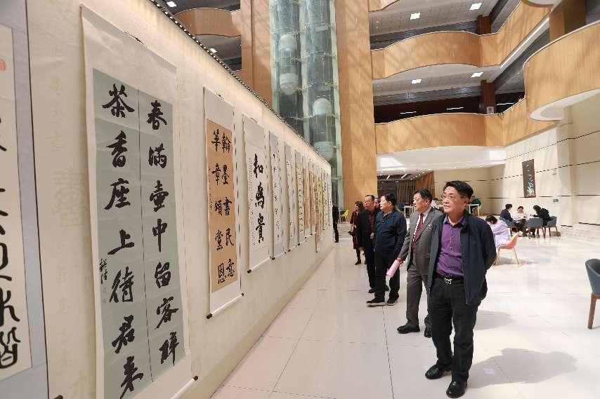 校长刘建朝教授宣布“奋进新征程,艺展新时代”beat365在线唯一官网师生书画摄影作品展开幕。